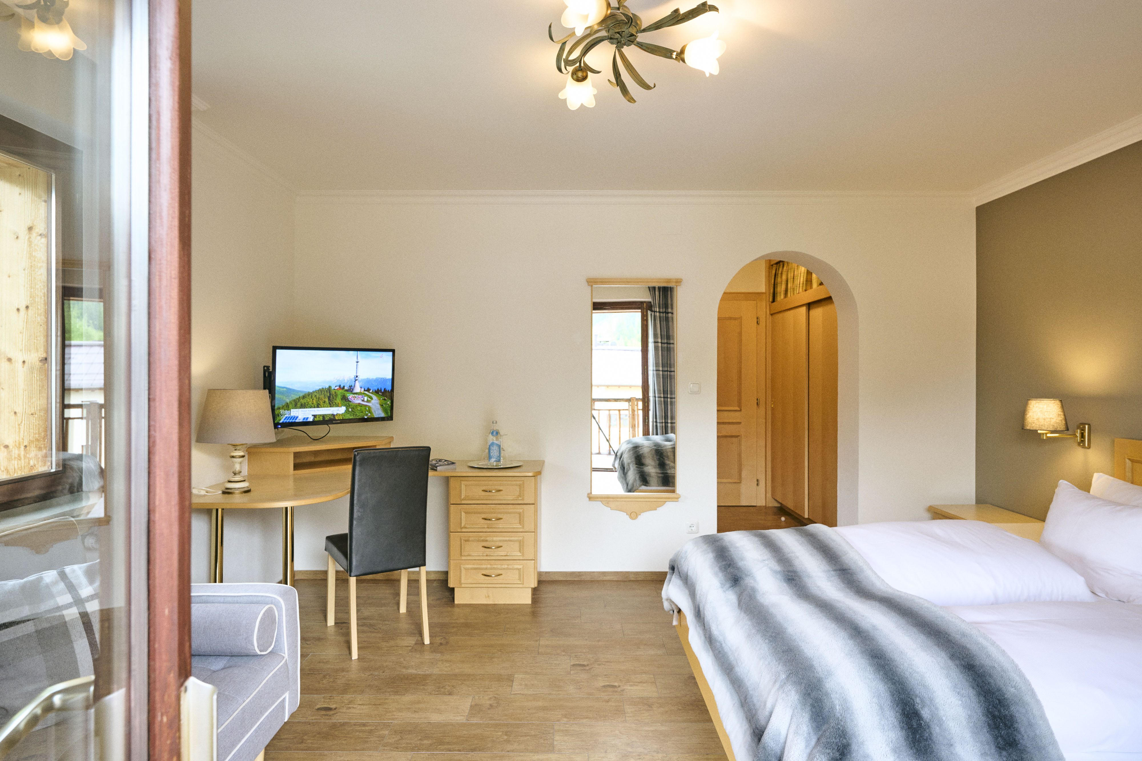 Die gemütlichen Doppelzimmer verfügen teilweise über einen Balkon oder Terrasse mit einem grandiosen Ausblick. Alle Zimmer verfügen über Bad oder Dusche/WC.